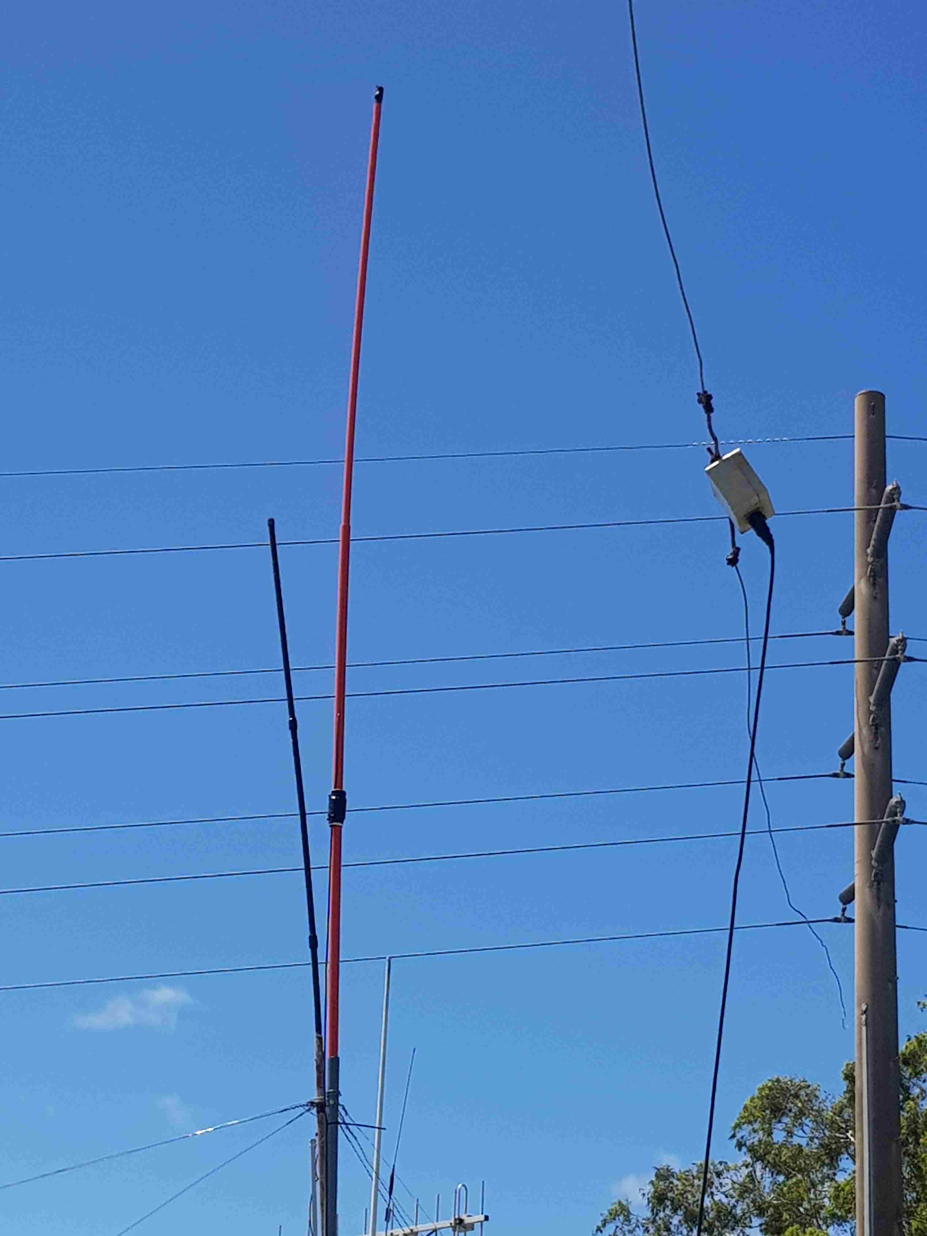 The top 100mm is stipped and twisted back to allow for lengthing the antenna in case the frequency is to high.